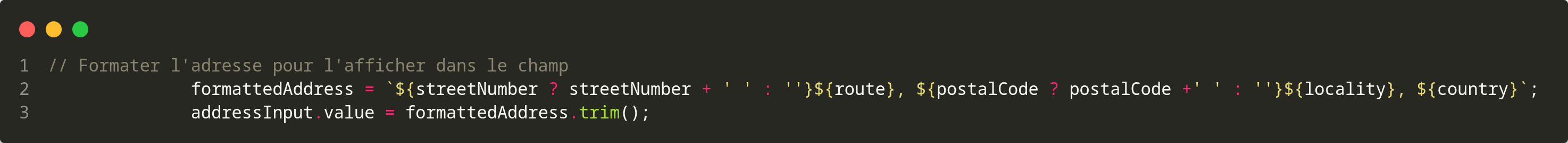 Intégration de l'API Google Place pour la saisie semi-automatique des adresses.